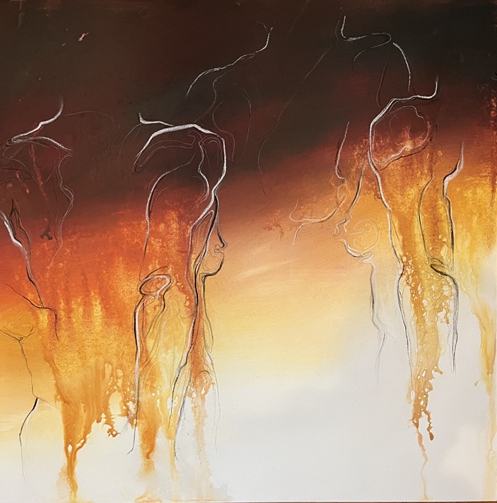 Dominique Rioux, artiste instinctive dans l’âme, je m’inspire du mouvement et de la musique pour me guider. Juste moi, mes outils et mon corps. Fluidité et mouvement émanent de mes œuvres peintes à l’acrylique sur toile ou dessin graphite et fusain. Tout est une question d’énergie dans le geste.
