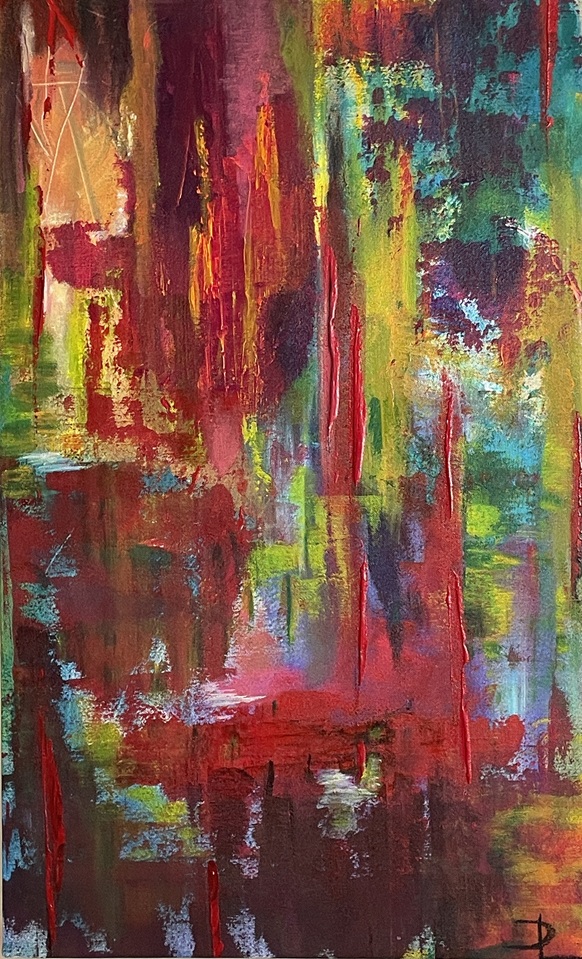 La peinture est une aventure, l’acrylique mon médium, l’abstrait un univers qui m’émerveille et me permet d’évoluer au gré de ma créativité.